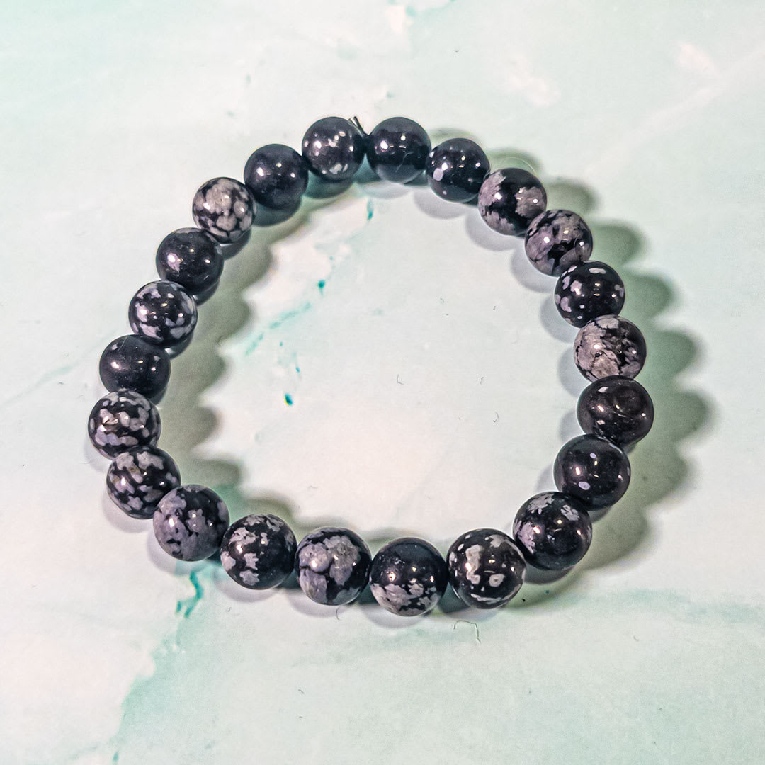 Snowflake Obsidian – Round Bead Bracelets